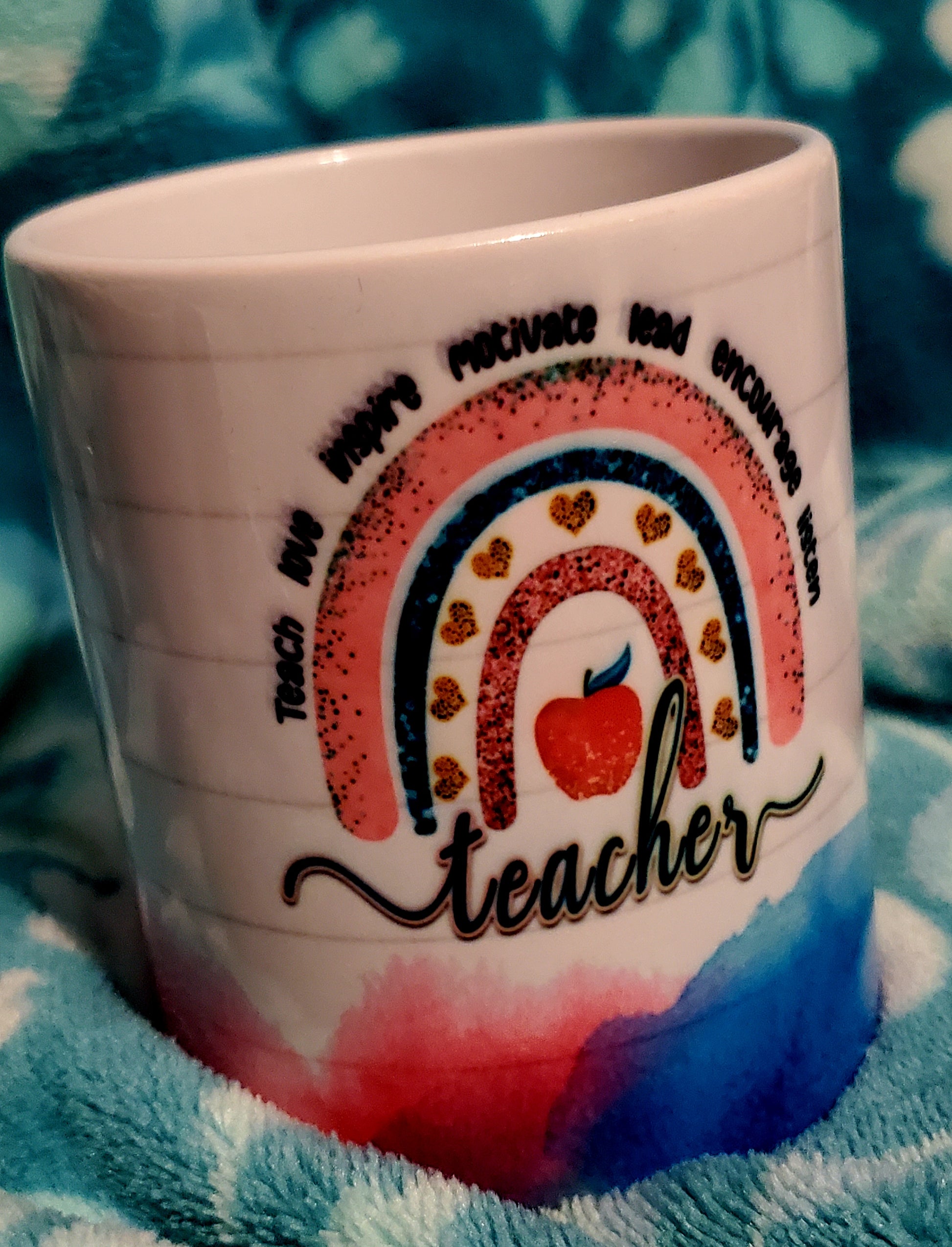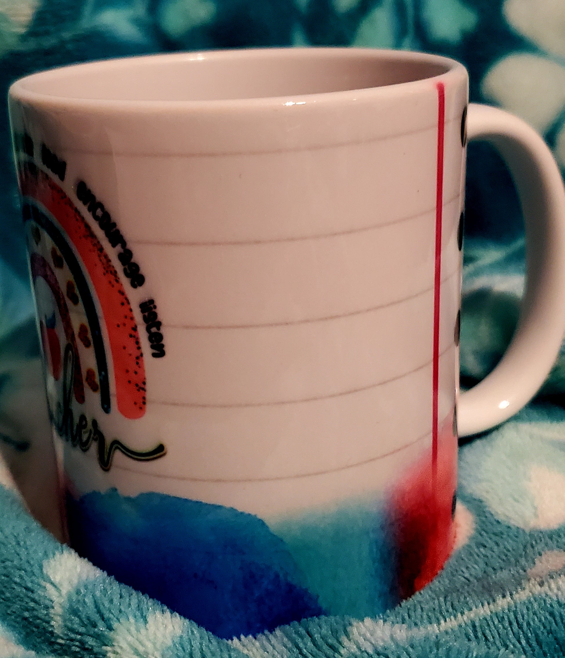 - Sublimation, ink is pressed into mug so the cup is dishwasher safe.